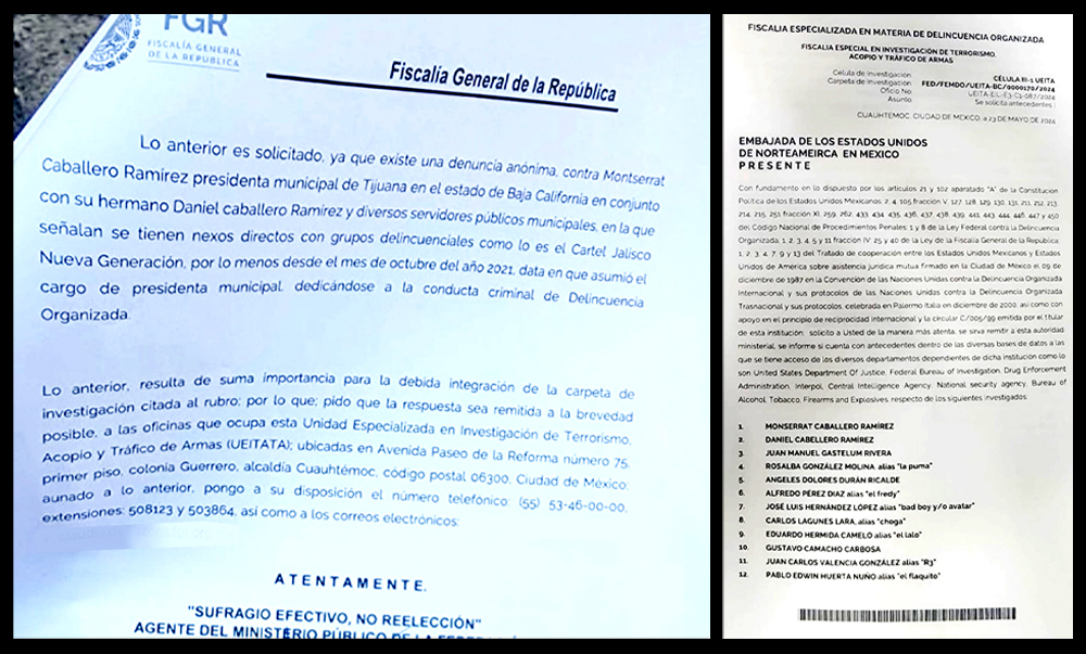 La Fiscalía Especializada en materia de Delincuencia Organizada (FEMDO) y la Unidad Especializada en Investigación de Terrorismo, Acopio y Tráfico de Armas (UEITATA) han abierto una investigación formal contra la exalcaldesa de Tijuana, Montserrat Caballero Ramírez. La indagatoria surge a partir de una denuncia que señala a la ex munícipe por supuestos nexos directos con grupos de la delincuencia organizada, específicamente el Cártel Jalisco Nueva Generación (CJNG), “por lo menos desde el mes de octubre del 2021”, según el expediente.