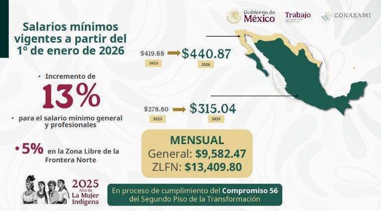 Gobierno federal anuncia aumento al salario mínimo para 2026