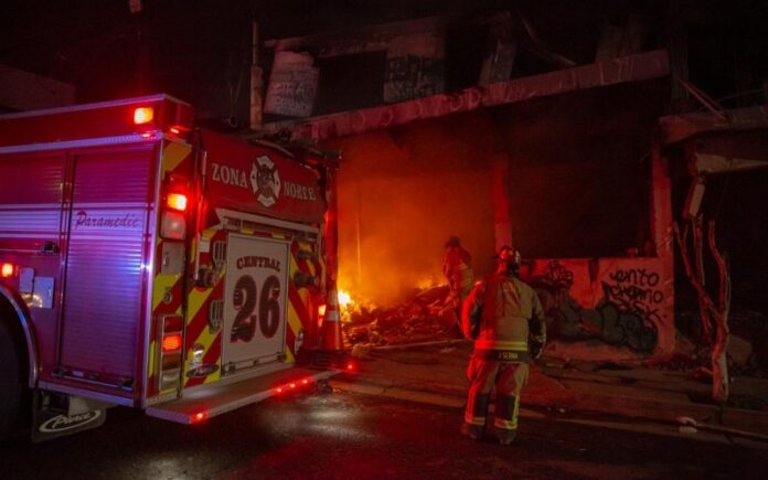 Vecinos de la colonia Marrón en Tijuana reportan un incendio con riesgo de derrumbe en locales abandonados. Créditos: Diario Tijuana