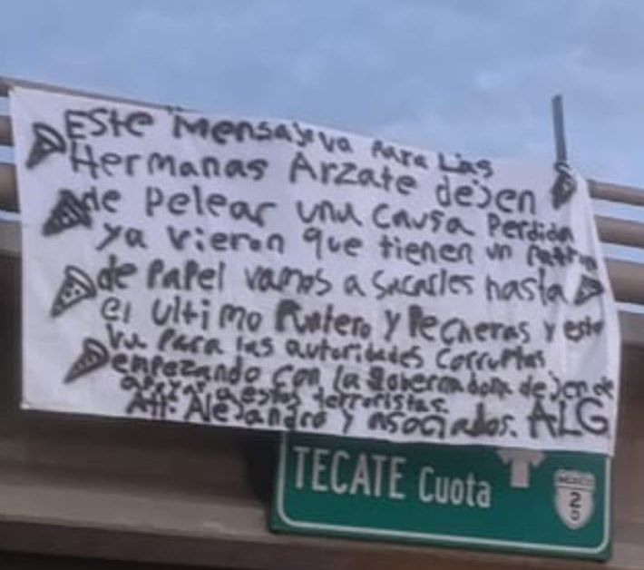 La ola de violencia e intimidación no cesa en Tijuana. La mañana de este lunes fue reportado el hallazgo de una narcomanta colgada en un puente peatonal del área conocida como «El Gato Bronco», una vialidad de alto flujo vehicular en la ciudad.