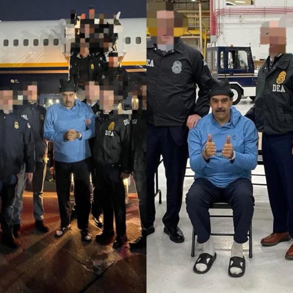 En las primeras imágenes difundidas, se observa a un hombre identificado como Maduro bajando de un avión, caminando lentamente y escoltado por más de 20 agentes de seguridad. Inicialmente aparece de espaldas, con el rostro cubierto; sin embargo, nuevos videos lo muestran de frente, vistiendo una sudadera azul y gorro, mientras es conducido por personal armado.