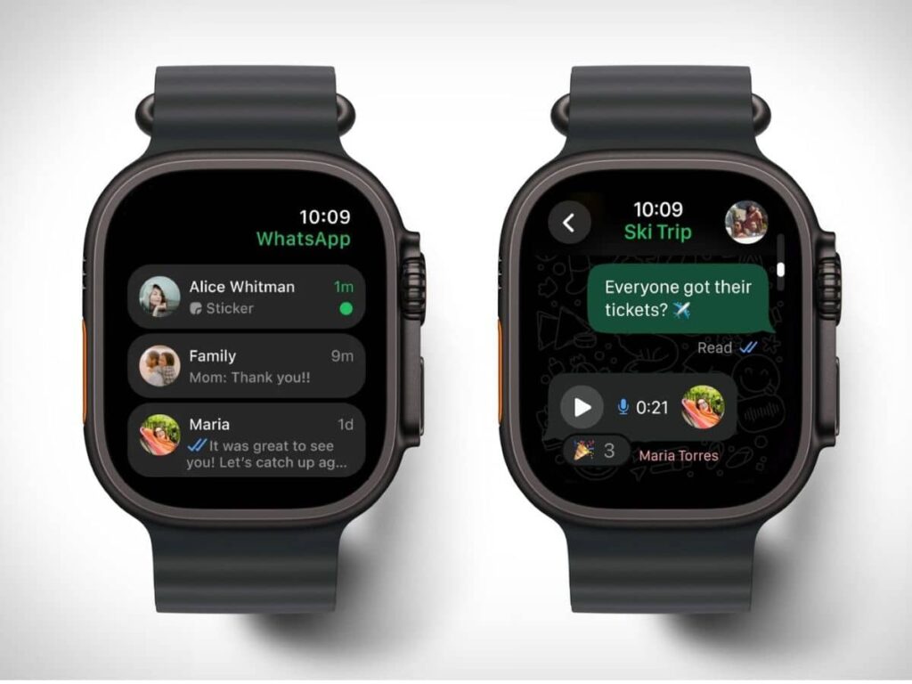 La aplicación de WhatsApp en Apple Watch integra funciones esenciales que mejoran drásticamente la experiencia de mensajería desde la muñeca. Los usuarios ahora pueden: leer mensajes completos (incluidos los extensos), grabar y enviar mensajes de voz, ver fotos y stickers, y revisar una parte ampliada del historial de chats. Además, la aplicación permite recibir notificaciones de llamadas y rechazarlas.